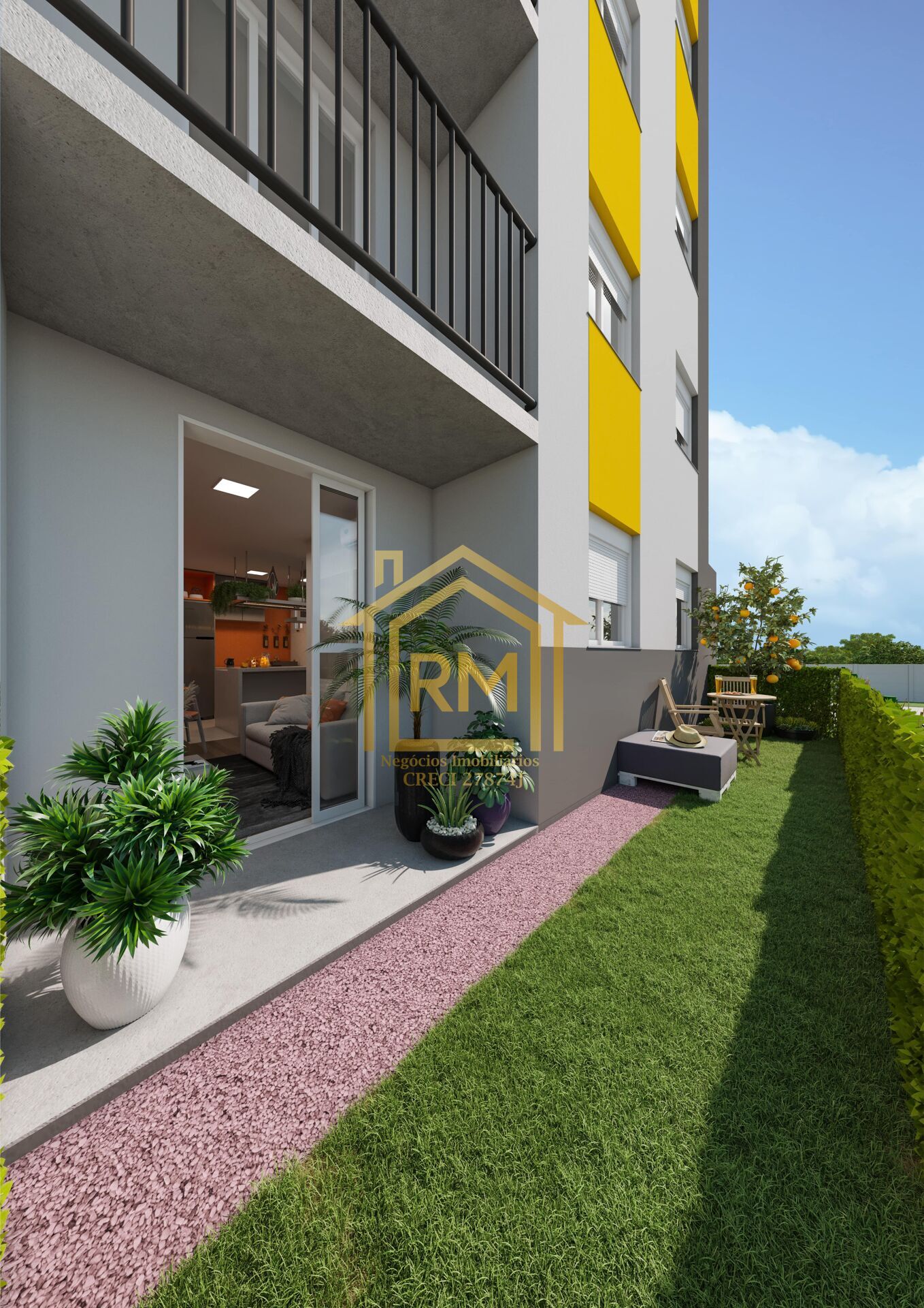 240 apartamentos, todos com 2 dormitórios, 47,08m² no apartamento com pátio. 49,69m² no apartamento com pátio e varanda. 47,08m² no apartamento sem sacada. 49,69m² no apartamento com sacada.